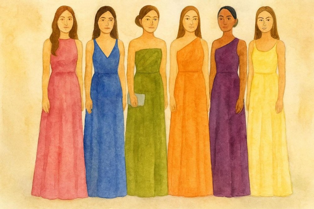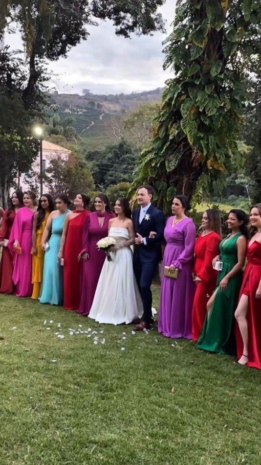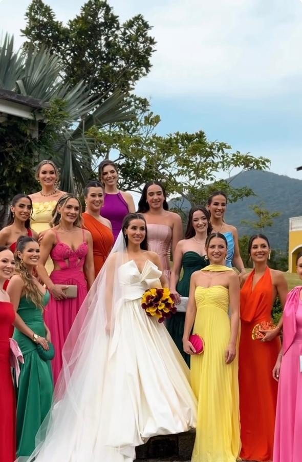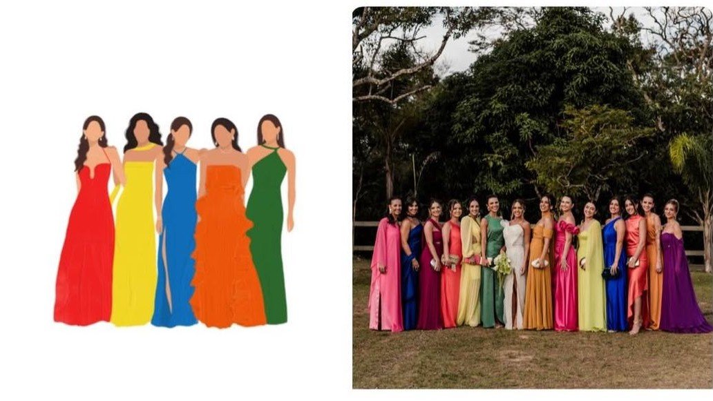 Como informado em nosso manual, queremos que nesse dia vocês se sintam lindas, elegantes e confortáveis. Optamos por cores alegres e vibrantes. Para mantermos um equilíbrio das cores, faremos a divisão delas em um grupo. Pedimos que apenas seja escolhido tecidos fluídos e sem aplicações, brilhos ou rendas e que respeite os tons vibrantes propostos abaixo.